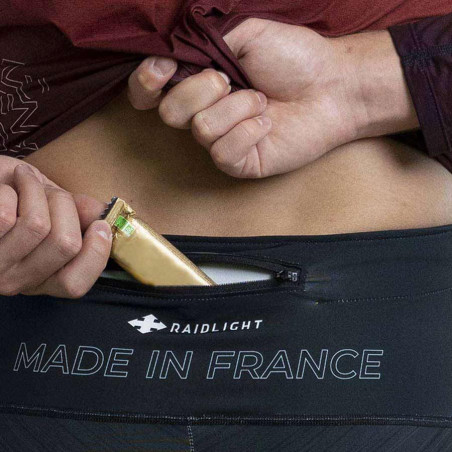 Le legging corsaire Raidlight Raidshell 3/4 se distingue par son confort avec une large ceinture élastique avec cordon et une poche arrière zippée.