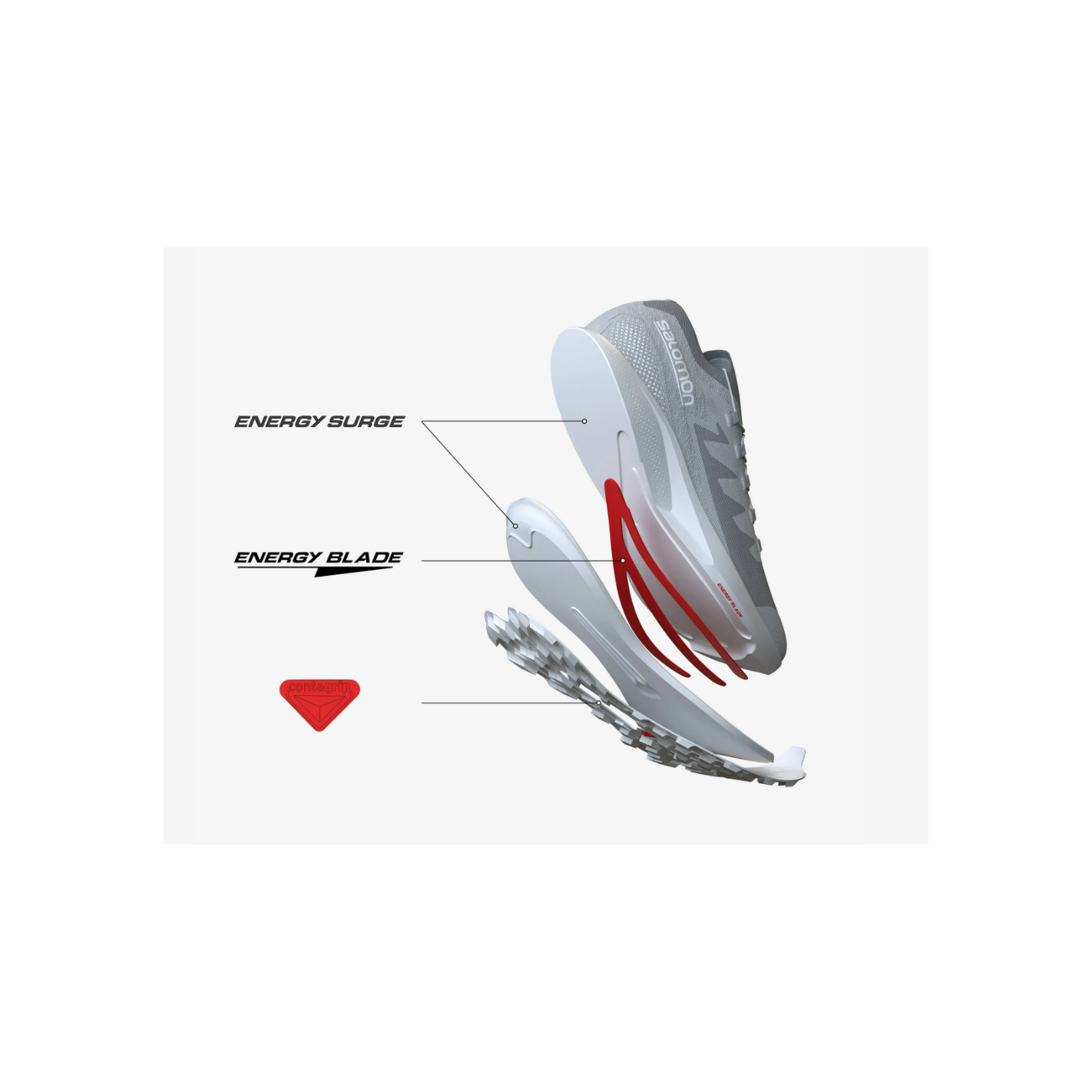 L’Energy Surge est un intercalaire en matière confortable qui assure un rebond dynamique et une foulée fluide.