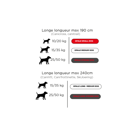 La longe OPALE a été conçu en prenant en compte deux critères, afin de sélectionner le type de longe à utiliser, le poids et la force de traction du chien.