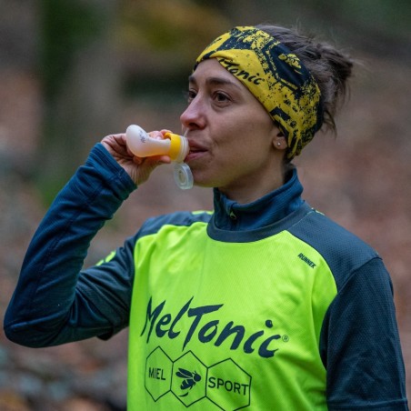Transportez facilement vos gels et purées énergétiques lors de votre activité sportive préférée, tout en respectant l'environnement, en utilisant la petite Fiole éco rechargeable Meltonic.