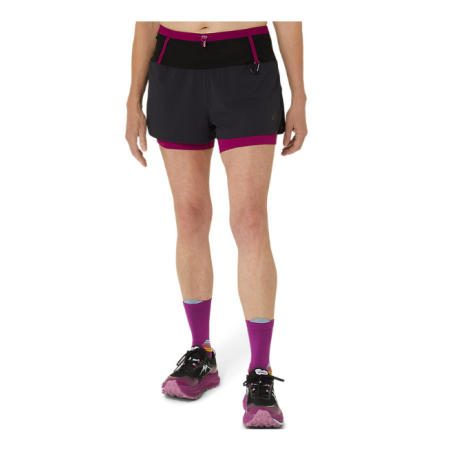 Short Running ASICS Femme FUJITRAIL 2-N-1 Noir / Violet PE 2024