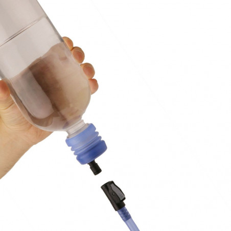 Adaptateur Universel pour remplir sa poche à eau: Notre solution révolutionnaire pour re-remplir votre système d'hydratation en chemin à partir d'une simple bouteille d'eau ou d'un robinet sans même à avoir besoin de sortir la poche du sac.