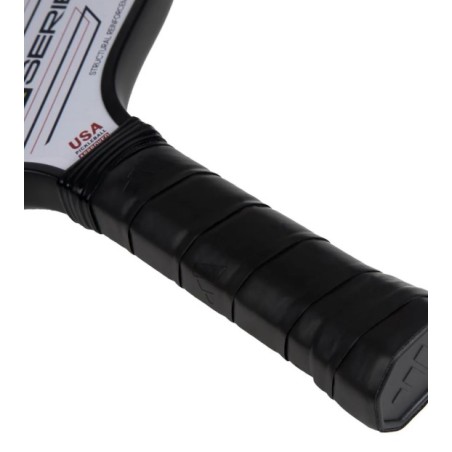 On profite ici d'un noyau en nid d'abeilles de polypropylène à faible densité, associé à la fibre de verre qui assure une maîtrise totale de la raquette à chaque frappe.