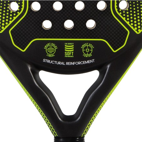Disposant d'un poids moyen de 365 g avec un équilibre medium, cette raquette propose une grande maniabilité afin de gagner en réactivité. Cette raquette propose un confort ultime grâce à sa composition en fibres de verre et de la technologie Eva Soft Performance.