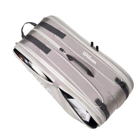 D’une couleur Stone très tendance, le sac Tour 12 Pack de Wilson comporte deux compartiments séparés avec fermetures à glissière pour transporter votre équipement (jusqu’à 12 raquettes) et vos vêtements.