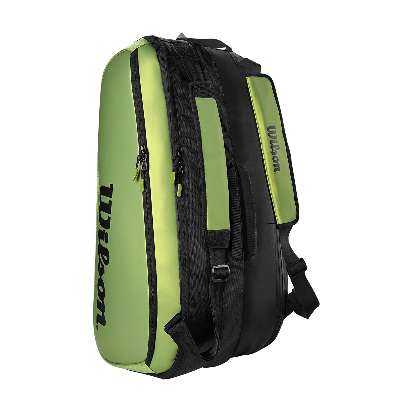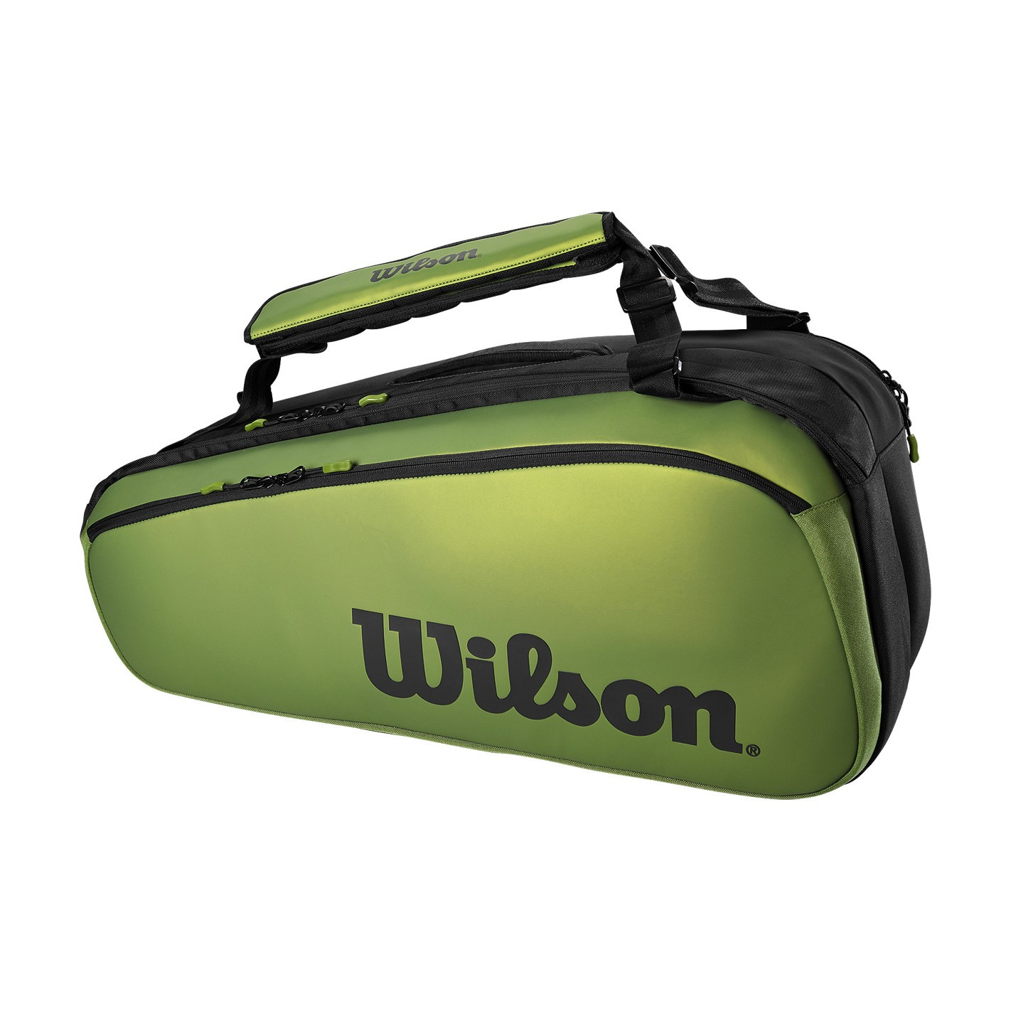 Inspiré des raquettes Wilson Blade V8, ce sac Wilson Super Tour Blade 9R s'expose au grand jour en proposant un design associant l'élégance du noir au verte caractéristique de la gamme Blade.